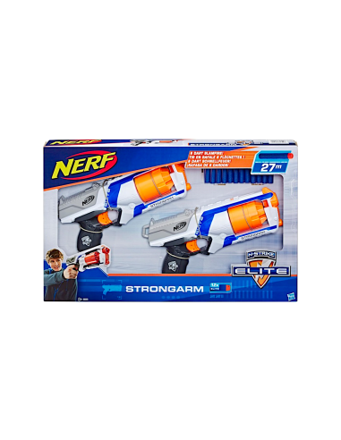 Divertimento raddoppiato con il NERF B8995 Strongarm Dual Pack! Questo set include due blaster Strongarm, perfetti per sfide in coppia o per avere sempre un blaster di riserva durante le battaglie Nerf. Entrambi i blaster sono dotati di tamburo rotante da 6 colpi che permette un rapido lancio dei dardi.