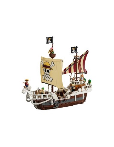 La nave presenta dettagli accurati, come la vela con il simbolo del Jolly Roger, il ponte e le cabine di comando, oltre a elementi interattivi che permettono di rivivere le avventure in mare della ciurma di Luffy. Inclusi nel set ci sono minifigure esclusive dei protagonisti, per animare il gioco e creare storie personalizzate.