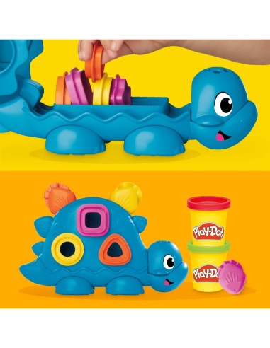 Il dinosauro è progettato per essere facile da maneggiare, con forme geometriche sul corpo che possono essere riempite con la pasta modellabile per creare "punte" colorate. Gli accessori inclusi, come stampini e attrezzi, permettono ai bambini di esplorare la creatività e sviluppare abilità motorie fini.