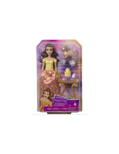 DISNEY PRINCESS SET DA TÈ DI BELLE, PLAYSET HLW20, BAMBOLA CON VESTITI SCINTILLANTI, ACCESSORI, GIOCATTOLI BAMBINE 3+