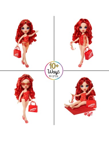 Scopri la creatività con la Rainbow High Swim & Style, una bambola da 28 cm con una confezione scintillante che può essere indossata in più di 10 modi diversi. Ruby, vestita di rosso dalla testa ai piedi, è pronta per il divertimento con il suo costume da bagno monospalla, sandali, occhiali da sole e borsetta. La bambola è completamente snodabile e perfetta per pose divertenti. Ideale come regalo, questo set ispirerà l'immaginazione e la creatività in ogni bambina o collezionista.