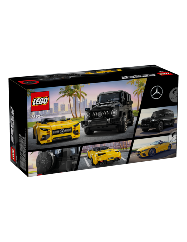 Metti in scena emozionanti gare con questo doppio pacchetto di auto Mercedes-AMG LEGO® Speed Champions. Puoi costruire, giocare ed esporre il potente Mercedes-AMG G 63 G-Class nero e la velocissima roadster decappottabile Mercedes-AMG SL 63 gialla. Ogni veicolo dell’iconico marchio automobilistico di lusso tedesco è ricco di autentici dettagli di design delle versioni reali e contiene una minifigure del pilota.