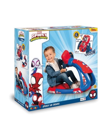 Simulatore di guide di Spidey & His Amazong Friends! Un simulatore di guida con comodo sedile regolabile su 3 posizioni di guida, pedali meccanici, un volante elettronico con circuito animato, schermo retroilluminato, 15 suoni auto / corsa, simulazione di guasti, 1 funzione boost, 1 retromarcia.