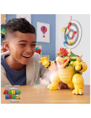 Immergiti nell'azione di The Super Mario Bros. Movie con la figura d'azione di Bowser, alta 18 cm. Questo giocattolo collezionabile offre 15 punti di articolazione, permettendoti di posare Bowser in varie modalità per ricreare scene iconiche o inventare nuove avventure. Attiva l'effetto sputafuoco aggiungendo acqua al serbatoio sulla parte posteriore della testa utilizzando il contagocce incluso. Premi il picchetto laterale per vedere un potente getto di fiamma illuminato! Viene fornito in una confezione di alta qualità, ideale per essere esposta e ammirata. Completa la tua collezione con altre action figure e playset del mondo di Mario. Adatta a bambini dai 3 anni in su. Richiede 3 batterie AAA (non incluse) e acqua per l'effetto sputafuoco.
