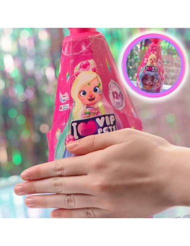 - Bambola a Sorpresa: Apri la bottiglia di shampoo per scoprire la tua bambola VIP PETS e decorala con un tocco scintillante.