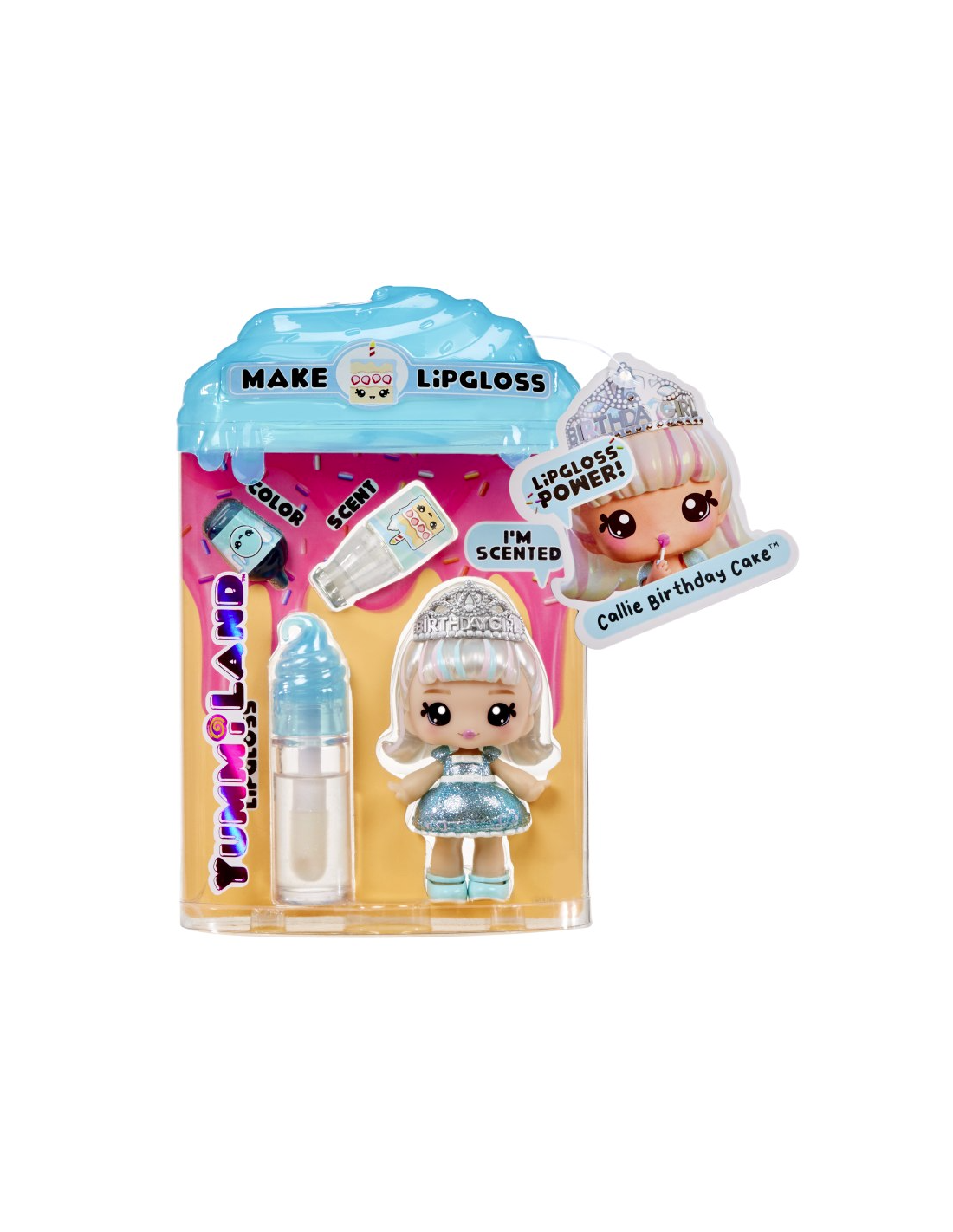 Scopri la dolcissima Yummiland Lipgloss Doll – Callie Birthday Cake, una bambola profumata che unisce il divertimento del gioco alla sorpresa del make-up!