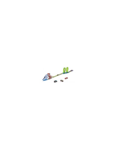 La Pista Squalo Doppio Loop Metal Machines ZUR6760 è il regalo perfetto per i piccoli amanti della velocità e delle avventure mozzafiato! Questo set spettacolare include una pista con due loop ad alta velocità e uno squalo gigante pronto a divorare le auto che non corrono abbastanza veloci.