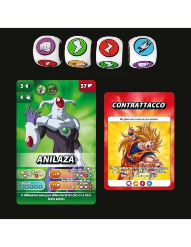 - Componenti robusti con carte, dadi e plancia ispirati all’universo Dragon Ball Super