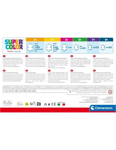 Clementoni garantisce materiali di alta qualità, sicuri e resistenti, perfetti per un uso quotidiano. Una volta completato, il puzzle può essere esposto come decorazione nella cameretta, portando colore e allegria all’ambiente.