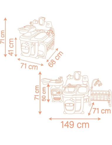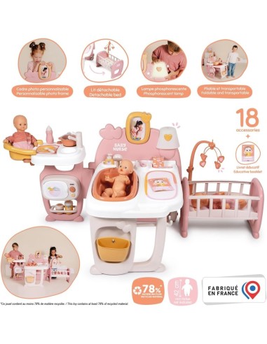 La Casetta Grande Baby Nurse di Smoby è il set completo per i bambini che amano prendersi cura dei loro piccoli. Progettata per bambole fino a 42 cm, la casetta offre 3 aree gioco tematiche che stimolano il gioco di ruolo, la fantasia e la creatività.