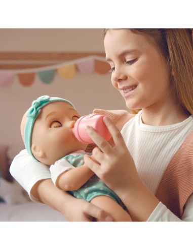 La confezione include un ciuccio e un biberon, accessori che arricchiscono l’esperienza e rendono il gioco ancora più coinvolgente. La bambola è pensata per bambini dai 18 mesi in su, sicura e adatta a lunghe ore di divertimento.
