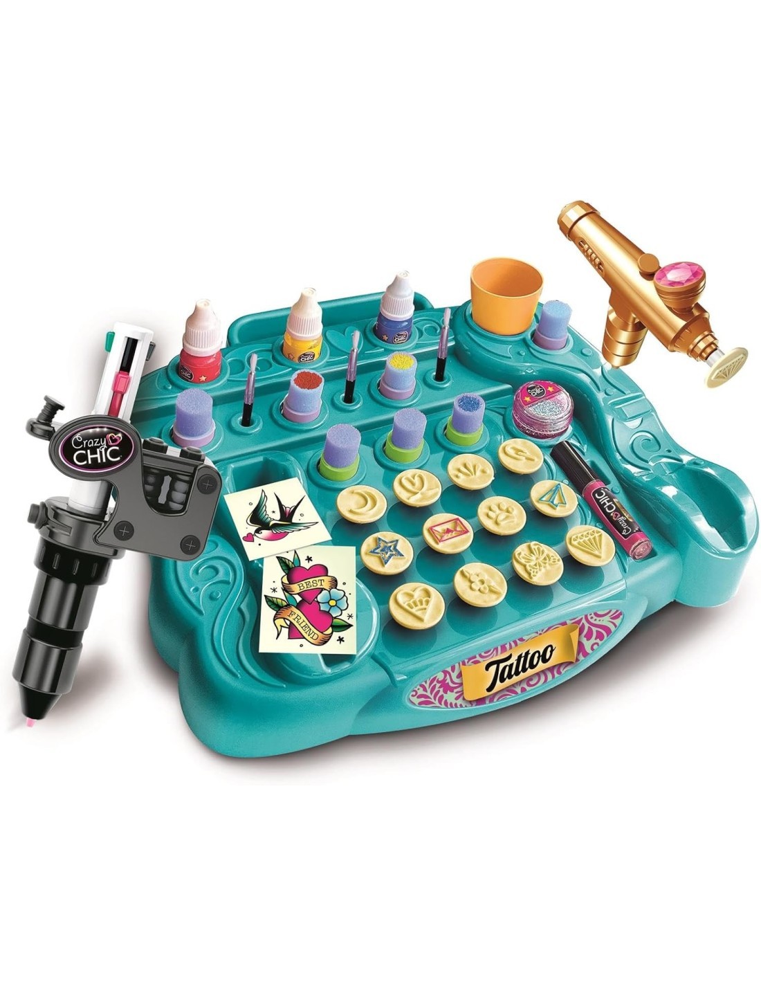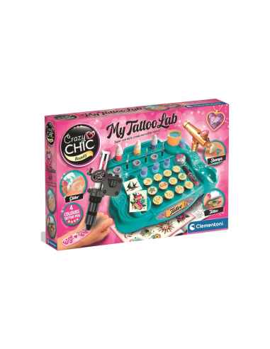 Il Clementoni Crazy Chic – My Tattoo Lab è un gioco creativo pensato per bambine dai 6 anni in su, perfetto per dare libero sfogo alla fantasia. Il kit consente di creare tatuaggi temporanei unici e personalizzati, utilizzando una penna con punte intercambiabili, glitter colorati, colori per il corpo e stencil.