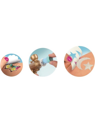 Grazie agli accessori inclusi, come spugnette e pennellini, le bambine possono decorare i tatuaggi con dettagli e rifiniture originali, sviluppando creatività, manualità e immaginazione.
