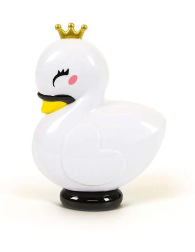 Cofanetto make-up a forma di elegante cigno, con design colorato e raffinato.