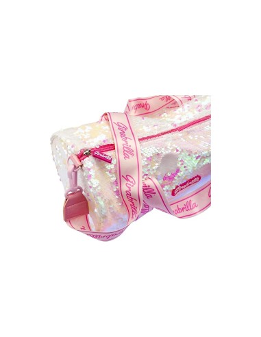 GIRABRILLA SPORT BAG: borsa scintillante rivestita da uno strato di paillettes reversibili che cambiano il colore quando le accarezzi. Disponibile nella versione bianca/rosa.