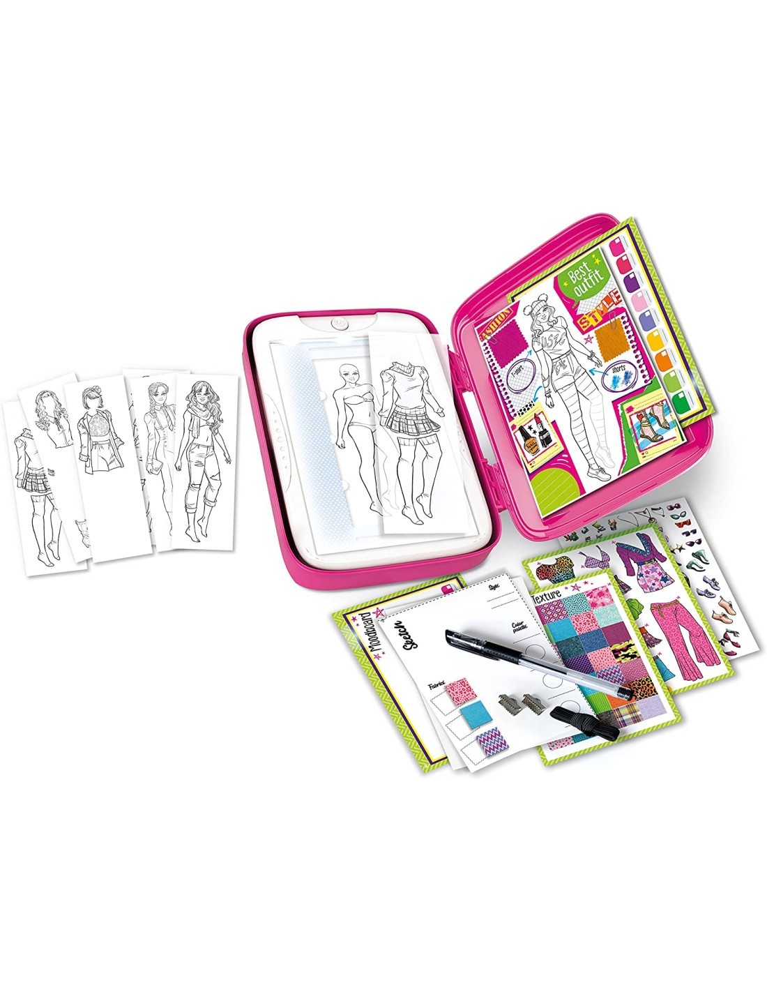 Il set Fashion Designer di Clementoni è un gioco creativo che trasforma le bambine in vere stiliste! Questo kit include una lavagna luminosa innovativa, che facilita il ricalco dei modelli di moda, e un fashion book con disegni e modelli per stimolare la creatività. Con la penna a china inclusa, le giovani designer possono realizzare bozzetti unici e personalizzati. Il set offre anche accessori adesivi per arricchire le loro creazioni. Ideato e progettato in Italia, è perfetto per bambine dai 6 anni che sognano di esplorare il mondo della moda.