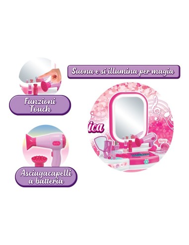Miss Signorina Specchiera è un gioco interattivo alta 72 cm, completa di LED, luci e suoni per rendere il gioco più realistico e divertente. Ideale per bambine che amano il make-up e i giochi di dress-up, stimola la creatività e il gioco di ruolo in totale sicurezza. Un regalo perfetto per momenti di gioco originali e coinvolgenti.