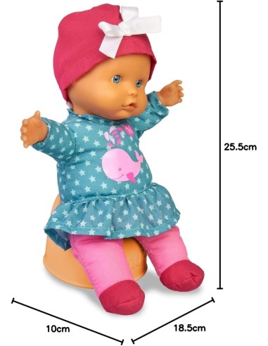 Accessori Inclusi: La bambola indossa un grazioso vestito e cappello e viene fornita con un vasino, rendendo il gioco più completo.