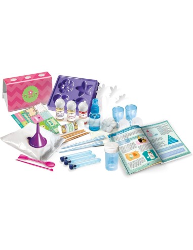 All’interno del laboratorio sono inclusi essenze profumate, ingredienti cosmetici naturali, flaconi, pipette e tanti strumenti da laboratorio per realizzare profumi personalizzati, diffusori per ambienti e oli aromatici. Il tutto è accompagnato da un dettagliato manuale scientifico illustrato, che spiega passo dopo passo come eseguire ogni esperimento, incoraggiando il bambino a sviluppare manualità, autonomia e gusto estetico.