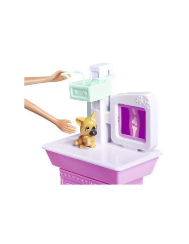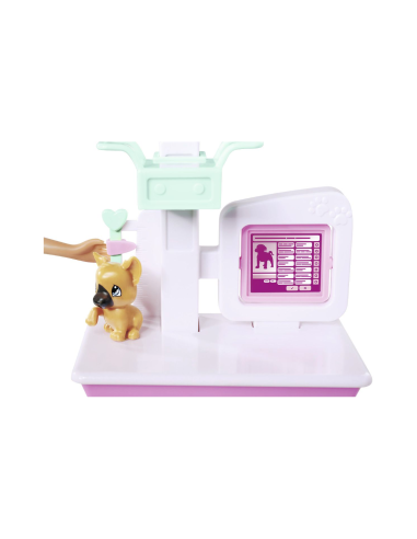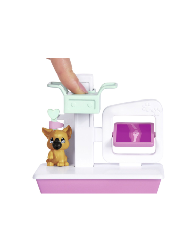 - Il set comprende un lettino per trattamenti con cassetti portaoggetti, una macchina a raggi X e una pesa- stazione. Inoltre, ci sono anche strumenti medici cruciali necessari per curare il suo simpatico cucciolo. C'è anche un collare di recupero a cono in modo che il cucciolo possa guarire dopo il trattamento