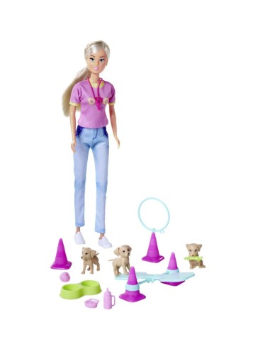 La Steffi Love Dog Trainer di Simba Toys è la compagna ideale per i bambini che amano le bambole e gli animali. Questa fashion doll, alta 29 cm, è pronta a trascorrere momenti indimenticabili con i suoi 3 cagnolini, ciascuno curato nei minimi dettagli.