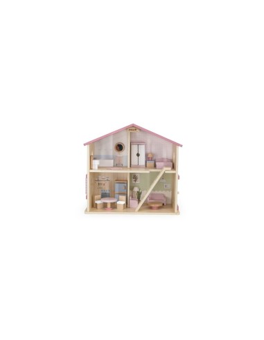La Casa delle Bambole in Legno Viga Polar B è un elegante e raffinato gioco educativo progettato per offrire ore di divertimento creativo. Realizzata in legno di alta qualità, questa casa su due livelli è completamente arredata con mobili e accessori che riproducono fedelmente gli ambienti domestici.