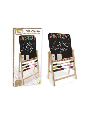 LAVAGNA IN LEGNO, PALLOTTOLIERE E GESSETTI, 66 CM X 40 CM, GIOCO EDUCATIVO, TEOREMA