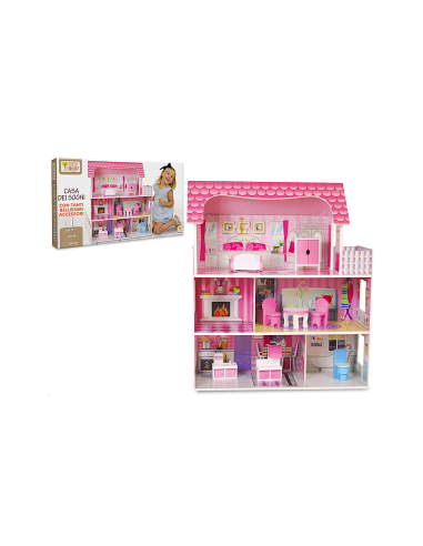 La Casa dei Sogni di Fatto di Legno è una splendida casa delle bambole realizzata interamente in legno, progettata per offrire ai bambini un'esperienza di gioco coinvolgente e creativa. Con tre livelli e cinque stanze arredate, offre ampio spazio per storie e giochi immaginativi. Gli accessori inclusi, come mobili e decorazioni, arricchiscono l'esperienza, permettendo ai bambini di decorare e personalizzare ogni ambiente. Perfetta per stimolare la fantasia e le abilità sociali, questa casa delle bambole è un regalo ideale per i più piccoli.