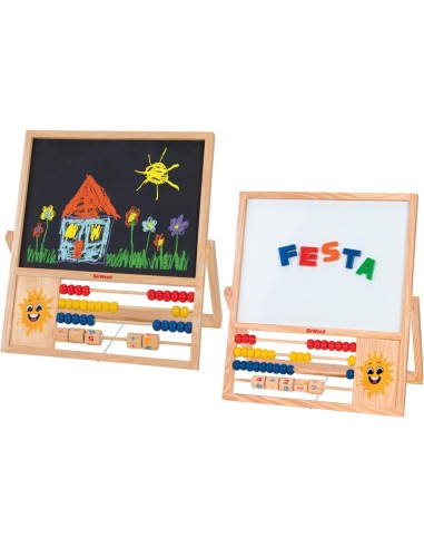 LAVAGNA IN LEGNO 2 IN 1, MAGNETICA E A GESSI, CON LETTERE E PALLOTTOLIERE, LEGNOLAND
