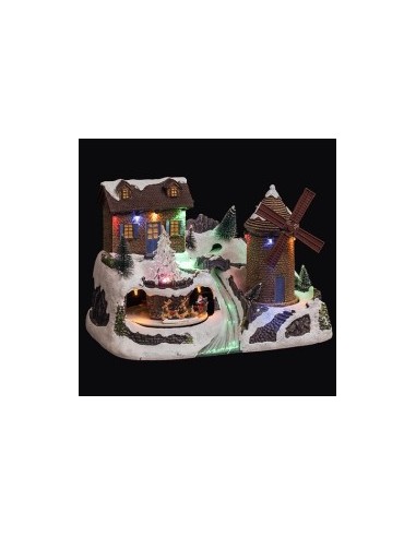 Giostrina Mulino Natalizio 20x19x31 cm con Musica, Luci e Movimento, Villaggio di Natale