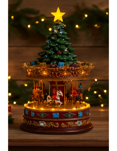 Giostrina di Natale carosello con led 22x22x35cm, decorazione luminosa scenografica, la magia di Natale per la tua casa