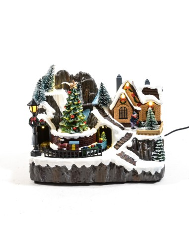 PAESAGGIO NATALIZIO 45045 RESINA 23X15X18CM MUSICA LUCI E MOVIMENTO