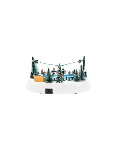 Aggiungi un tocco incantevole alla tua casa durante le festività con il Lago Ghiacciato con Pattinatori Rotanti. Questa graziosa decorazione natalizia raffigura un tranquillo lago ghiacciato dove pattinatori si muovono in cerchio, illuminati da coloratissimi LED che creano giochi di luce spettacolari.Con 8 melodie natalizie che ripetono in sequenza, puoi decidere di vivere l'intera esperienza con luci, movimento e musica o, se preferisci un'atmosfera più tranquilla, di disattivare solo la musica. Il villaggio funziona a batterie (3xAA non incluse) o può essere alimentato tramite trasformatore opzionale.Le dimensioni compatte di 26x20xH13cm lo rendono perfetto per decorare qualsiasi angolo della tua casa, aggiungendo un pizzico di magia e allegria natalizia.
