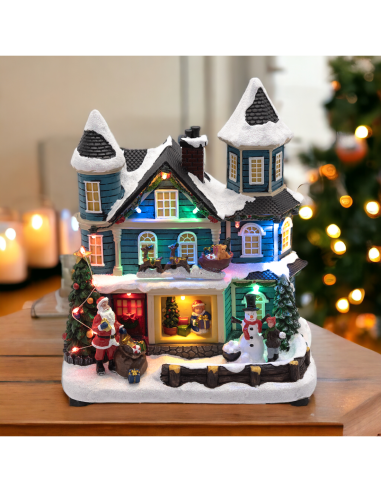 Villaggio di Natale Casa con scena natalizia 20x23cm in polyresina