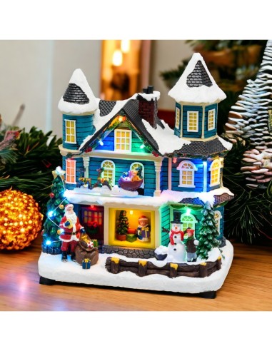 Villaggio di Natale Casa con Scena Natalizia 20x23cm, Musica Natalizia