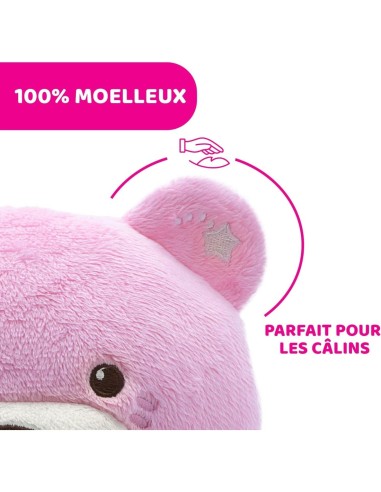 Chicco First Dreams Orsacchiotto Peluche Baby Bear, Pupazzo Proiettore con Luce Notturna, Rilassanti Melodie, Rosa 0 Mesi +