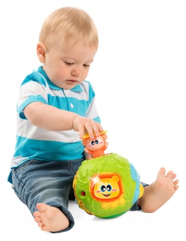Chicco Gioco Palla Pop Up, Palla Musicale con Effetto Sorpresa, a Tema Giungla Con Luci, Suoni ed Effetto Cucù, Sviluppa Abilità Manuali, 6-36 Mesi PALLA ELETTRONICA: La Palla Chicco Pop Up è una palla musicale tema giungla con luci, suoni, attività manuali ed effetto cucù EFFETTO SORPRESA: Premendo il pulsante con il leone, la luce si accende e la scimmietta appare con un effetto cucù SVILUPPA ATTIVITA' MANUALI La Palla Pop Up di Chicco comprende molte attività manuali ed elettroniche, che aiuteranno i piccoli a sviluppare le loro abilità manuali e il gattonare MUSICA: La palla Pop Up prevede due livelli di volume per calibrare la musica BATTERIE: la palla Pop Up funziona con due batterie di tipo AA 1,5V inlcuse
