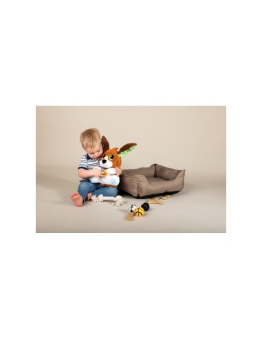 Baby Fido Parla e Gioca è un adorabile cagnolino peluche progettato per accompagnare i più piccoli nell'apprendimento in modo divertente e interattivo. Questo giocattolo educativo aiuta i bambini a scoprire la lingua, i numeri, i colori e le emozioni attraverso giochi e attività coinvolgenti. Fido ha la capacità di ripetere tutto ciò che il bambino dice, con la voce che cambia e le orecchie che si muovono a ritmo. Il gioco si sviluppa su 3 livelli per adattarsi al ritmo e alla crescita del bambino, e il cucciolo muove le orecchie e la testa in base alle interazioni. Con 4 pulsanti interattivi sulle zampe e un collare luminoso, Fido attiva musica, suoni, storie e conversazioni, offrendo un'esperienza di gioco completa e stimolante.