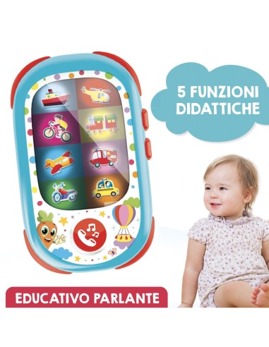 Il Carotina 111343 Baby Smartphone è un gioco educativo pensato per i bambini più piccoli, ideale per stimolare curiosità e apprendimento fin dai primi mesi. Con il suo design colorato e le funzioni interattive di luci e suoni, riproduce l’aspetto di un vero smartphone in una versione sicura e divertente.