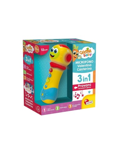 Il Carotina Baby Microfono Valentino Canterino 3 in 1 è un giocattolo allegro e multifunzionale progettato per intrattenere e educare i più piccoli. Questo giocattolo include un microfono con effetti sonori divertenti, un puzzle con tessere che migliorano le capacità motorie e cognitive, e un kit educativo per stimolare la creatività e l'apprendimento. Perfetto per i bambini che amano esplorare e creare, questo giocattolo offre ore di divertimento educativo.