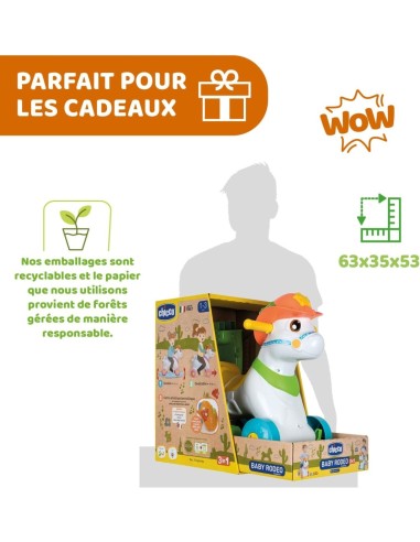 - Cavallo a Dondolo e Cavalcabile: Il Chicco Baby Rodeo è un cavallo a dondolo che si trasforma facilmente in un cavalcabile robusto e sicuro.