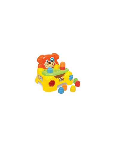 - Poltroncina a forma di cagnolino che contiene 10 mattoncini morbidi Clemmy