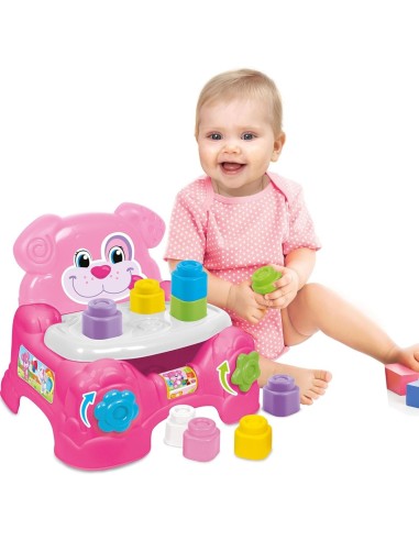 Clementoni Poltroncina Porta Mattoncini Cagnolina - Poltroncina Interattiva con 10 Mattoncini Clemmy