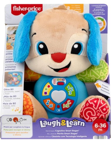 Fisher-Price – Cagnolino Ridi e Impara Smart Stages Multilingue, Peluche Musicale Interattivo 6+ mesi
