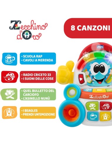 Songy Il Cantante di Chicco è il gioco musicale elettronico ideale per bambini dai 3 ai 6 anni. Trasforma la voce dei bambini in una canzone grazie alla modalità karaoke, che permette anche di rimuovere la voce del cantante per cantare insieme ai brani. Con la modalità REC, i piccoli possono registrare un discorso e trasformarlo in una canzone divertente. Il gioco include 8 canzoni e 4 generi musicali diversi, con 7 luci che creano un effetto discoteca per un'esperienza unica. Il microfono staccabile e le diverse modalità offrono molteplici possibilità di intrattenimento e creatività.