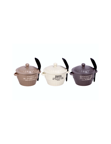 Zuppiera in Ceramica 450 ml Assortita con Coperchio e Cucchiaio
