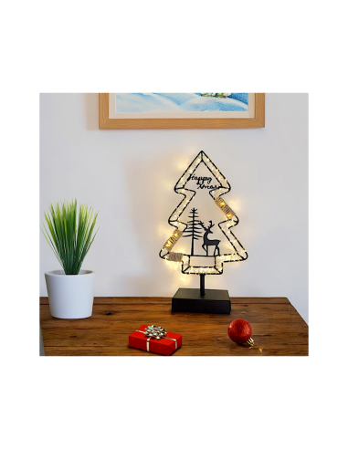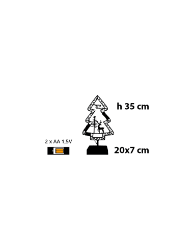 Funziona con 2 batterie AA (non incluse) ed è dotato di porta batterie integrato. Con dimensioni 20x7xH35cm e certificazione per uso interno, è una decorazione portatile che si adatta perfettamente a tavoli, mensole, scrivanie o piccoli spazi.
