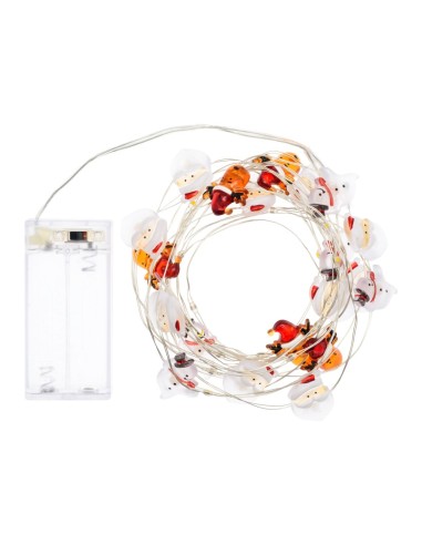 Catena di Natale Decorata D4 4m, 40 MicroLED Bianco Caldo, Babbo Renna Pupazzo 3D, Cavo Argento, Batteria