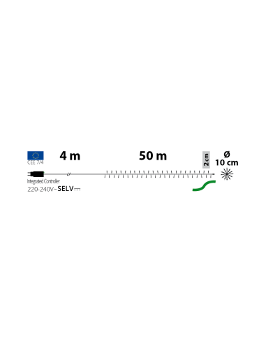 La lunghezza totale di 50m (più 4m di cavo di alimentazione) permette decorazioni estese e di grande impatto visivo. Certificata IP44, è adatta sia per uso interno che esterno, garantendo sicurezza e resistenza.
