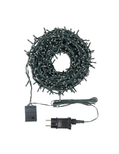 Il memory controller integrato garantisce praticità, mentre il Timer giornaliero (8 ore On / 16 ore Off) è facilmente gestibile tramite il pulsante luminoso 3 funzioni (On-Timer-Off) sul trasformatore SELV di sicurezza. Con i suoi 30 metri di luci + 4m di cavo di alimentazione verde e protezione IP44, è adatta sia per interno che esterno.